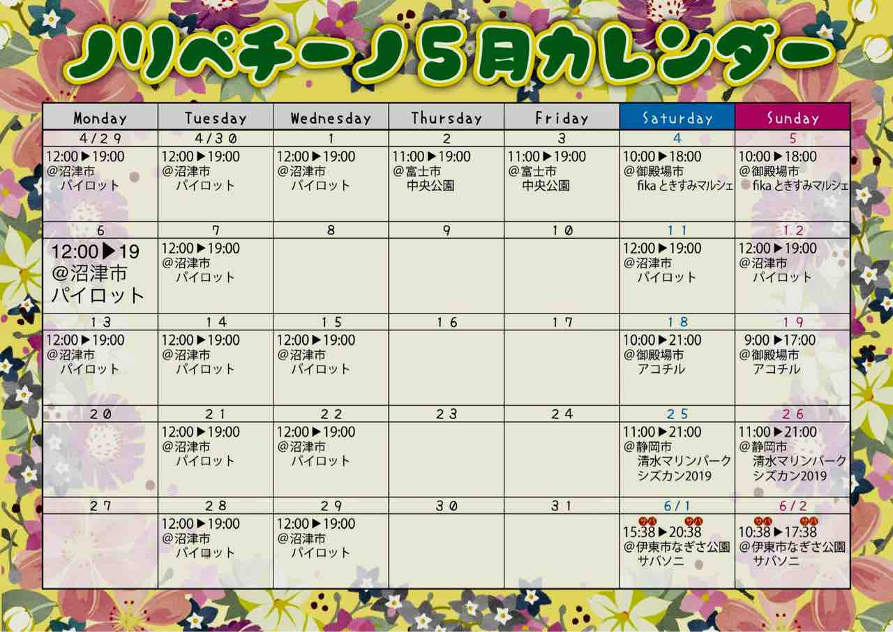 ノリペチーノカレンダー5月分